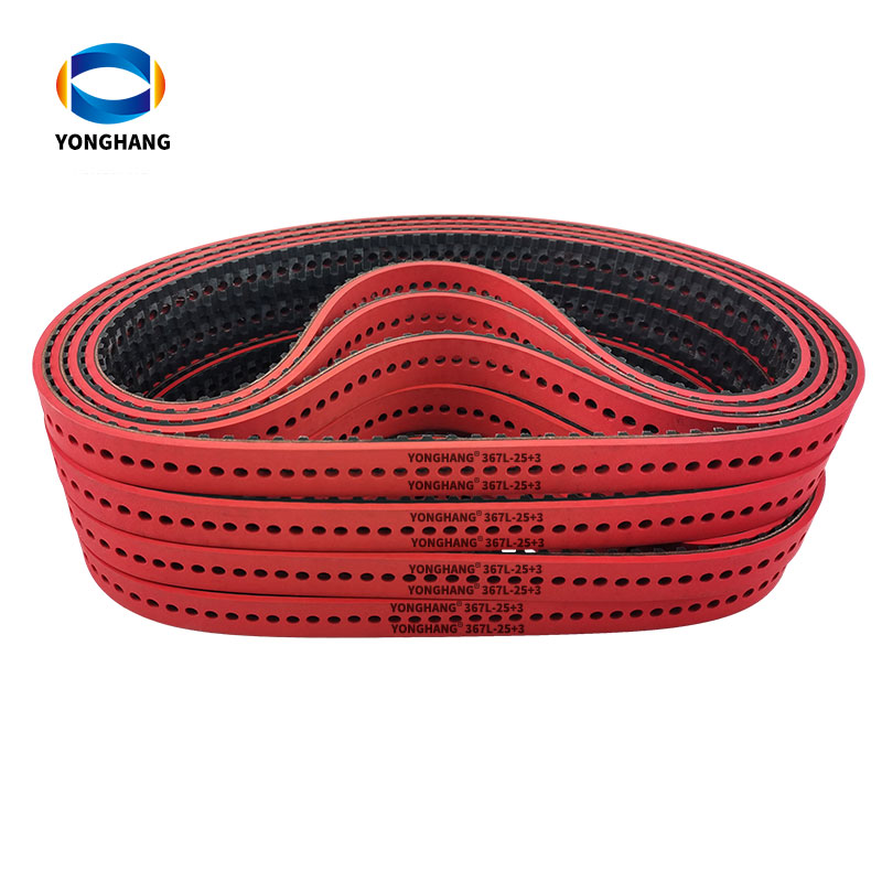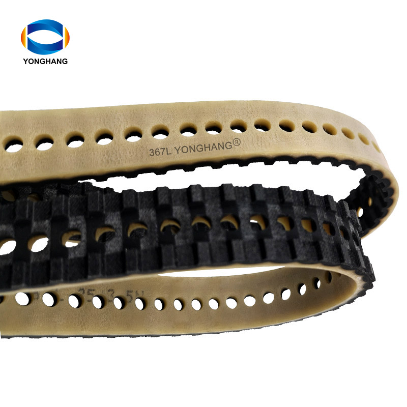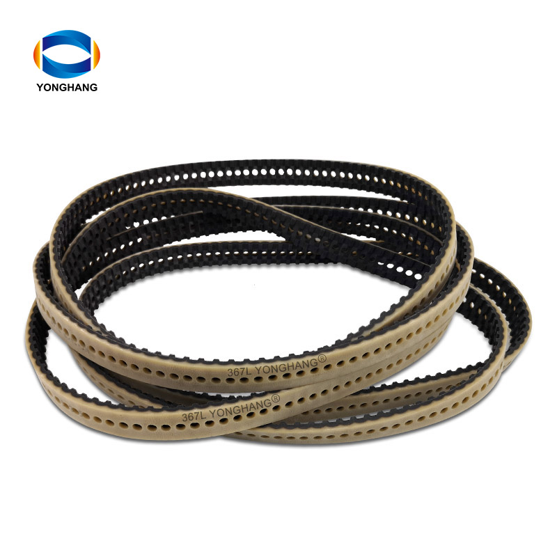 367L-25+3 form fill seal (VFFS)belts is a perforated brown coated timing belt, Vertical form-fill seal (VFFS) machine turns a roll of packaging film into a shelf-ready finished bag.Vertical packing machines start with a large roll of film, form it into a bag shape, fill the bag with product, and seal itthat wraps the product in a tube / bag and packages it.