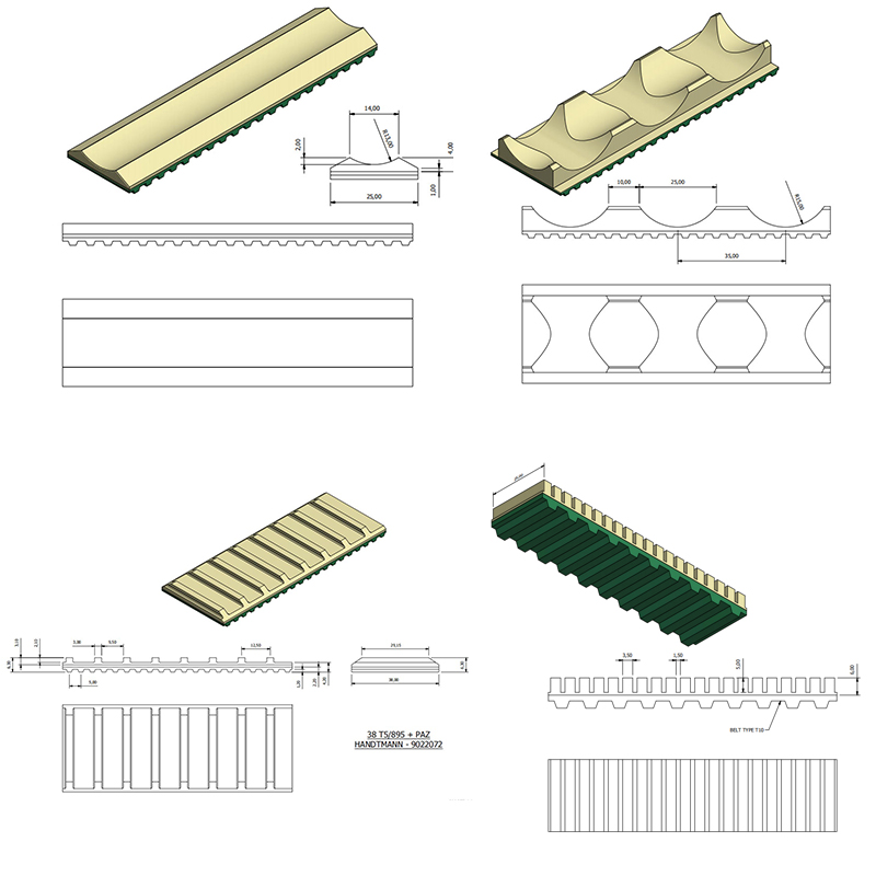 These customized sausage belts are potential replacement belts for sausage feeders such as Inotec Delinker, Ari Makina, Duker-Rex, Finova, Handtmann, Hitec, Signal-Pack, Vemag, Risco, Inox Meccanica, Seydelmann. yonghang customized Sausage belts usually consist of polyurethane body and steel cord, while custom materials available upon request. Special cords include aramid (kevlar), stainless steel and carbon fiber. These…