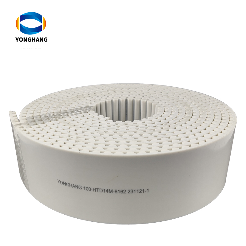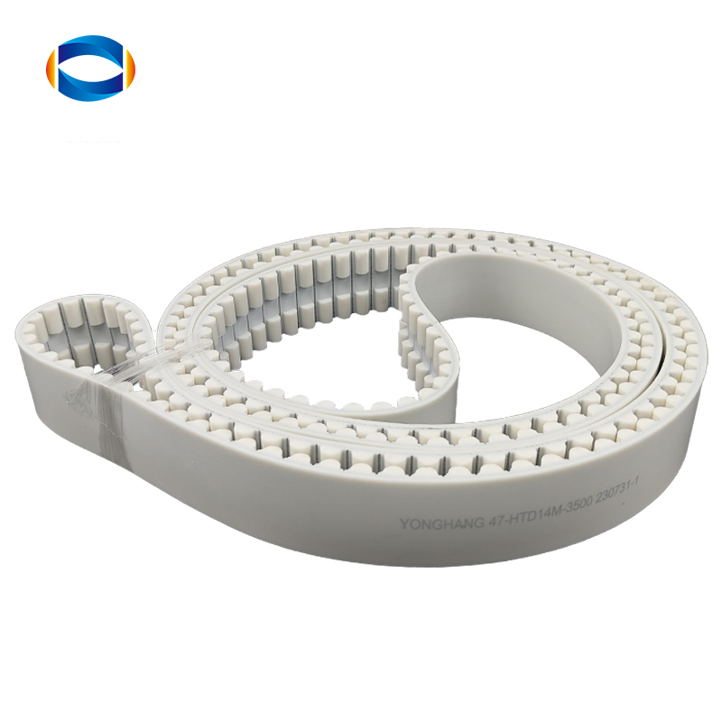 HTD14M PU timing belt has semi-circular tooth (HTD) structure with 14mm pitch, which is widely used in industrial automation and precision equipment. HTD14M pU Timing Belt Description Model HTD14M Material Polyurethane Pitch 14mm Color White/Black Core Steel/Kevlar Hardness 90-92 Shore A Length/Width Tolerance ±0.5mm Thickness Tolerance ±0.3mm Minimum Pulley Diameter 108.7mm