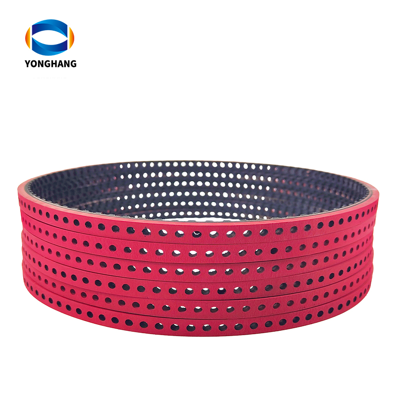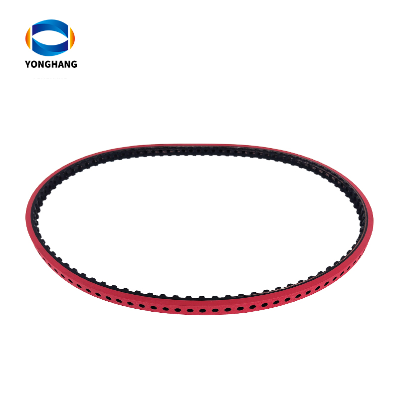 T10.5-934.5-12.5 Vacuum timing belt for pulling applications,10.5mm pitch 934.5mm length,This is a special pitch designed specifically for tobacco packaging machines. It is a vacuum conveyor belt.