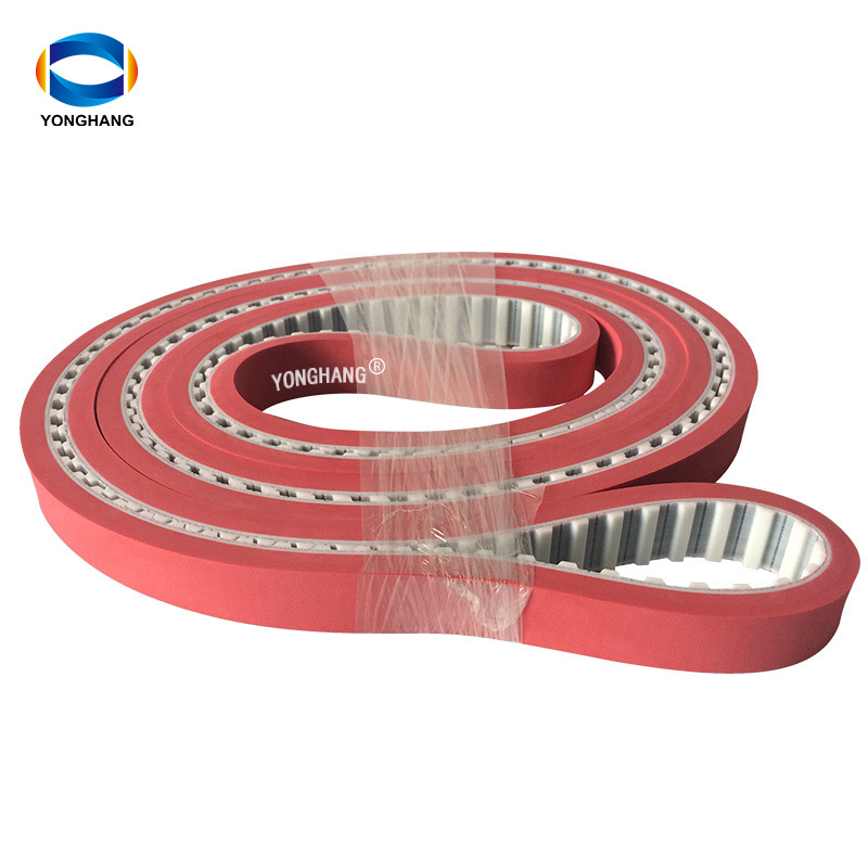 Red rubber coating is usually applied to the surface of rubber or PU timing belts.Resitant against oil,water,hard-wearing,Yonghang is skilled at applying various coatings to the surface of synchronous belts.There is no limit to the length. The width should not exceed 400mm according to the specifications of the timing belt. The thickness should be between 2…