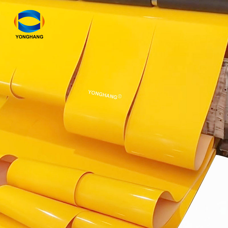 Yonghang have 6 extrusion production lines for PU conveyor belts, three for 2m width belts, three for 3m width belts. the production process is simple and the production efficiency is high; the strength of raw materials is reduced less, and the strength of the conveyor belt is higher than that of the blade coating process; the TPU adhesive layer is not easy to generate air bubbles, the structure is dense, and the thickness uniformity is high.